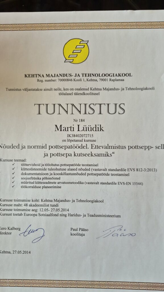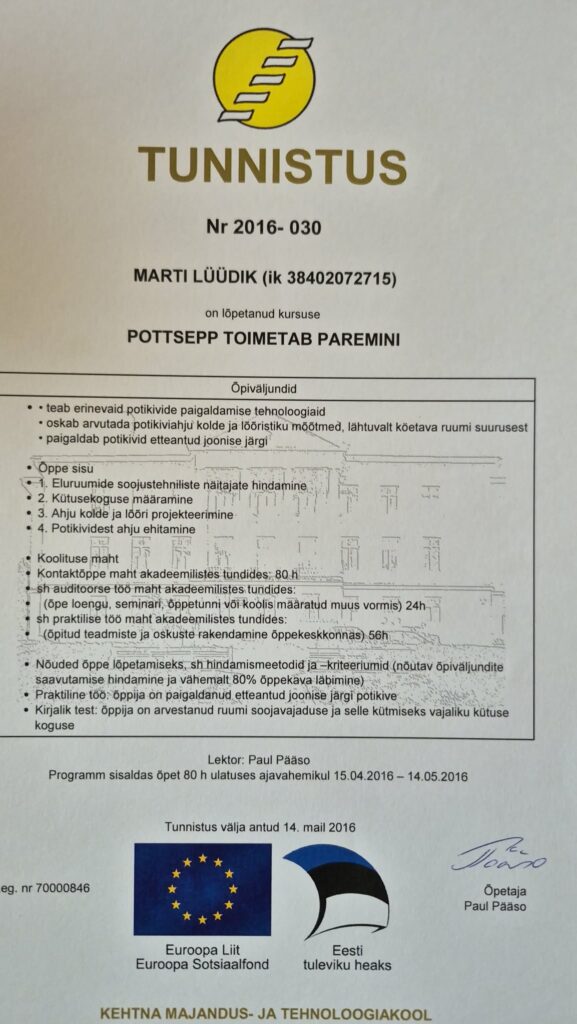 Tel: +372 56740280 rinaldo@pottsepatood.ee